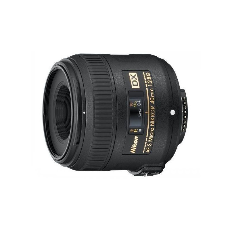 Obiettivo macro in formato DX da 40 mm standard. Ideale per le distanze incredibilmente ridotte, offre un'apertura massima pari a f/2.8 e un rapporto di riproduzione di 1:1.