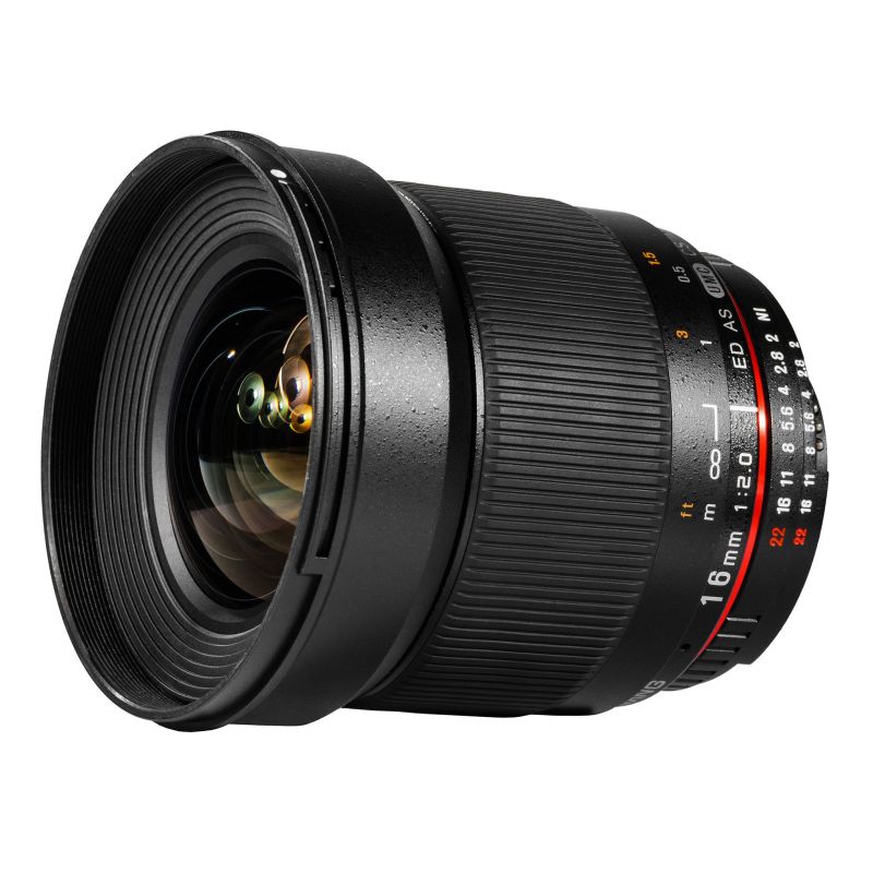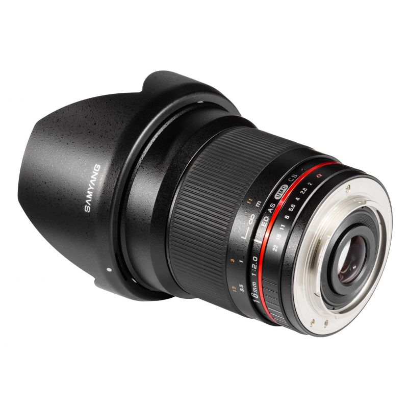 Ultragrandangolare, il luminoso obiettivo Samyang 16mm f/2.0 ED AS UMC è stato ideato per le reflex digitali e le compatte mirrorless con sensore APS-C. Questo obiettivo è stato realizzato con un' estrema cura per i dettagli. Il suo schema ottico è composto da 13 elementi in 11 gruppi compreso 1 elemento ED con un bassissimo fattore di dispersione, un elemento asferico realizzato in vetro ottico e un elemento ibrido-asferico. Le lenti sono state trattate con un trattamento multistrato antiriflesso UMC, per assicurare una perfetta trasmissione della luce.