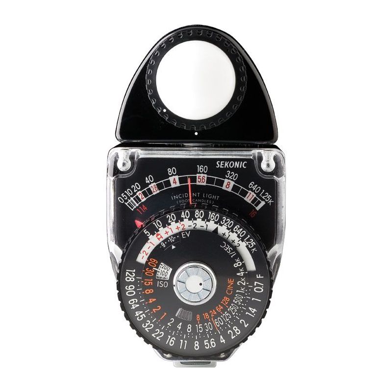 Testina ruotante e indice ad ago (bloccabile) per una lettura analogica semplice ed accurata Fotocellula al silicio amorfo (non servono batterie) Lumisfera (per misurare il contrasto, la distribuzione e lintensità della illuminazione); lumidisc per luce riflessa; lumigrid (griglia per misurare la luce incidente) - Memoria per mantenere lultima misurazione - Scale per misurazioni foto e cine - Dim.: 58x112x34mm; peso 190g SPECIFICHE TECNICHE angolo massimo di misurazione 45.0 ° luce ambiente true massima velocità di scatto 1/8000 max ev 20 number max f-stop f/128 max ISO 12000 min ev 1 number min f-stop f/1 min ISO 6 modalità cine 8 to 128 tipo di display analog velocità di scatto minima 60 CARATTERISTICHE Compact and Very Portable Compatto e tascabile - Design compatto. E' possibile utilizzarlo con una sola mano ed è riponibile in un taschino. Rugged housing Robusto - Di costruzione robusta ed affidabile è adatto ad un uso professionale.