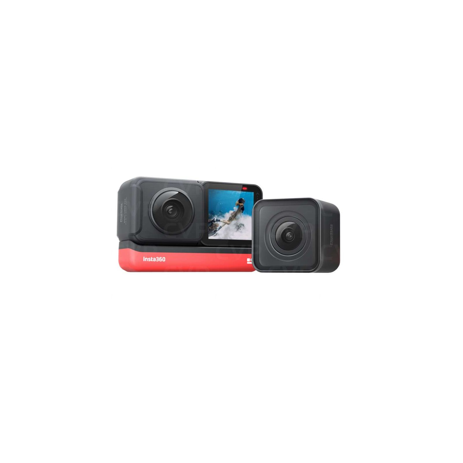 La versione Twin Edition: include 1x Mod grandangolo 4K, 1x Mod 360 a doppio obiettivo, 1x Core, 1x Base batteria, 1x Copriobiettivo e 1x Staffa di montaggio.